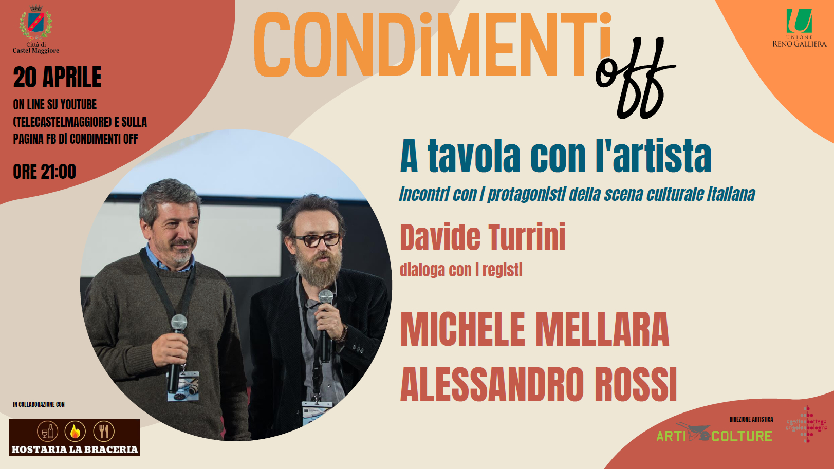 CondimentiOff torna dopo le feste pasquali con un appuntamento dedicato al cinema d’autore: sarà la volta infatti di 2 ospiti speciali, storica coppia artistica del documentario d’autore, Michele Mellara e Alessandro Rossi.