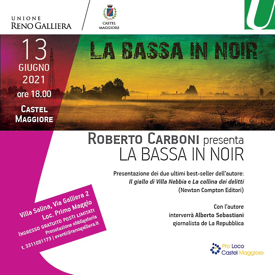 Ritorna la rassegna La Bassa in Noir, promossa da Unione Reno Galliera e Comune di Castel Maggiore, con l’autore bolognese Roberto Carboni: nei due appuntamenti a Villa Salina Malpighi il 13 e 20 giugno ci racconterà i suoi due ultimi libri e ci parlerà di scrittura di tensione.