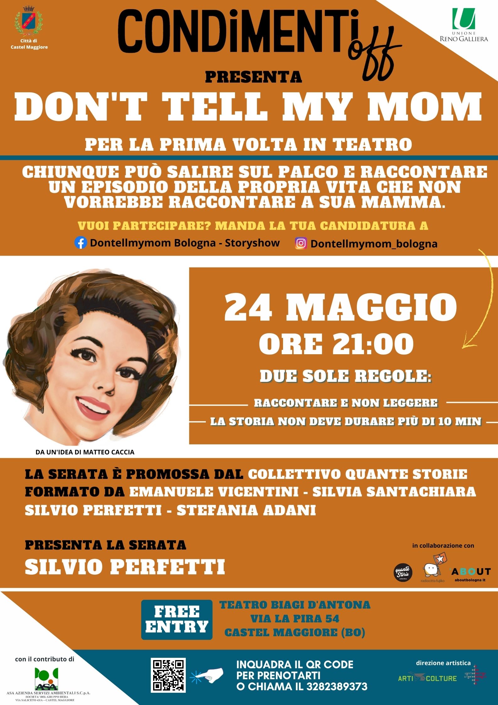 La serata è promossa dal collettivo Quante Storie, ovvero Emanuele Vicentini, Silvia Santachiara, Silvio Perfetti e Stefania Adani, che promuovono varie forme di spettacolo tutte legate allo storytelling, in collaborazione con About Bologna, magazine online di cultura urbana a Bologna (aboutbologna.it). Presenta la serata Silvio Perfetti.