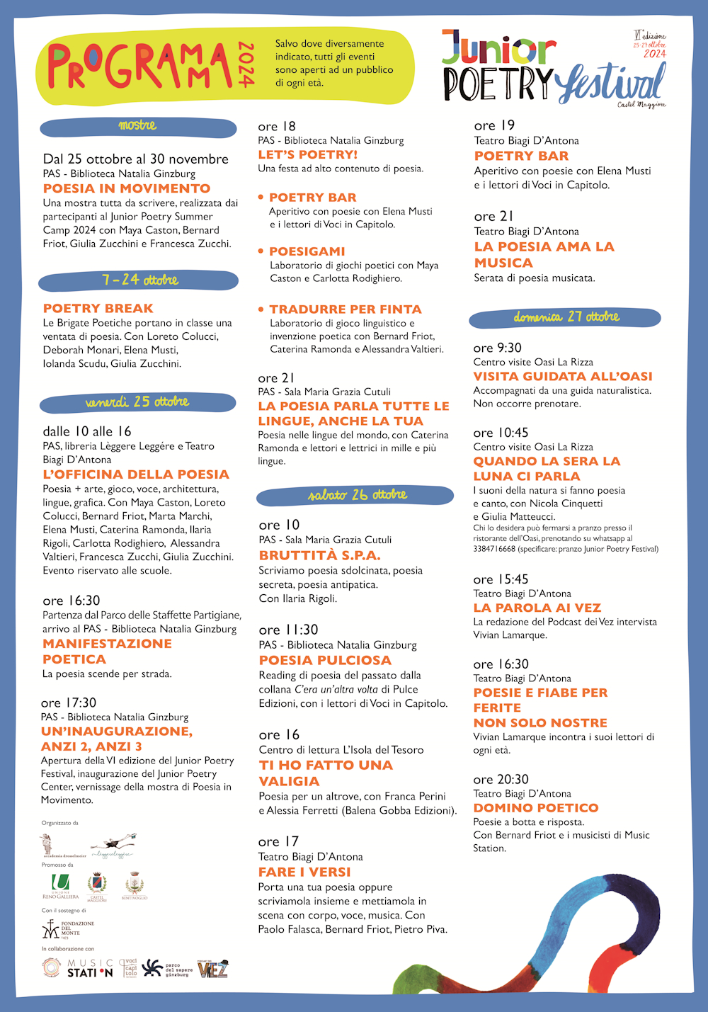 6^ edizione del festival internazionale di poesia per bambini/e e ragazzi/e, dal 25 al 27 ottobre 2024 a Bentivoglio e Castel Maggiore.