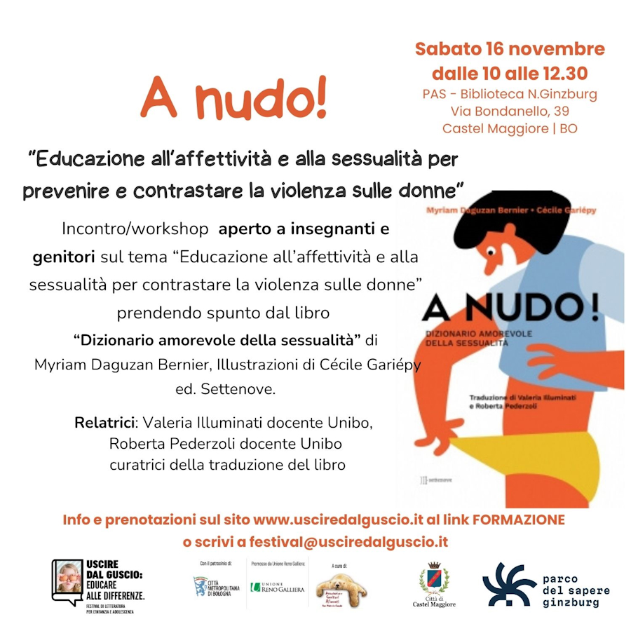 Incontro/workshop sul tema “Educazione all’affettività e alla sessualità per contrastare la violenza sulle donne” prendendo spunto dal libro “Dizionario amorevole della sessualità” di Myriam Daguzan Bernier, Illustrazioni di Cécile Gariépy (ed. Settenove).