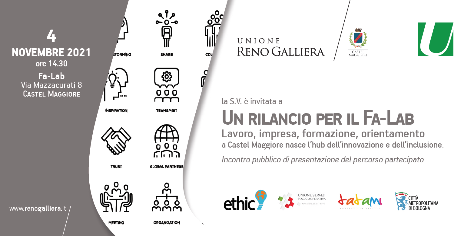 Nato nel 2017 con lo scopo di essere un nuovo punto di riferimento sul territorio nei settori della qualificazione e riqualificazione personale e professionale, del sostegno alla ricerca attiva del lavoro, dell'autoimprenditorialità e della cultura d'impresa, con particolare riguardo all'innovazione tecnologica e alla promozione della creatività, dopo le difficoltà del lockdown il Fa-Lab è oggi al centro di un progetto di rilancio da parte dell’Unione Reno Galliera e della Città di Castel Maggiore, con la collaborazione e il supporto della Città Metropolitana di Bologna, attraverso la partnership con Ethic srls, Cooperativa Tatami e Cooperativa Unione e Servizi.