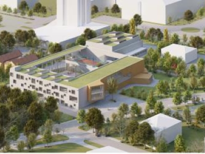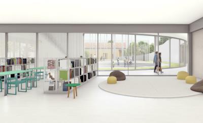 Alcuni rendering del progetto della nuova scuola secondaria di primo grado Donini Pelagalli: