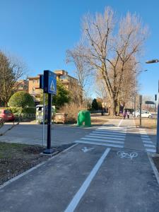 E' stata creata una pista ciclabile di collegamento fra via della Costituzione e via Alpi, con la messa in sicurezza degli attraversamenti ciclopedonali attualmente critici, mediante rafforzamento della individuazione e riconoscibilità da parte dell'utente stradale (pavimentazioni diversificate, impianti a chiamata, illuminazione, segnaletica orizzontale), è stato rifatto e completato il marciapiede attualmente presente solo in parte sul lato nord della strada, nuove panchine caratterizzano alcuni punti di sosta ombreggiati dall'imponente alberatura che costeggia la strada, è stato infine collocato un dosso rallentatore.