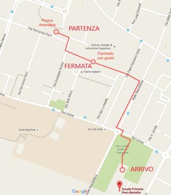 RITROVO ore 7.50 e partenza dai capolinea di Via Chiesa (S.Andrea) alle 8.00 e Piaz-za Amendola alle 8.05, con le fermate intermedie davanti al municipio (Via Matteot-ti+Rimembranze) e presso il Keynes (Via La Malfa + parchetto giochi).
