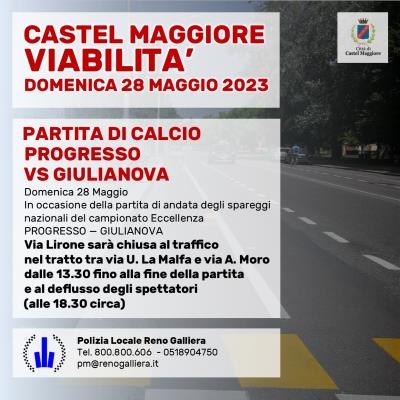 Via Lirone chiusa al traffico - Comune di Castel Maggiore