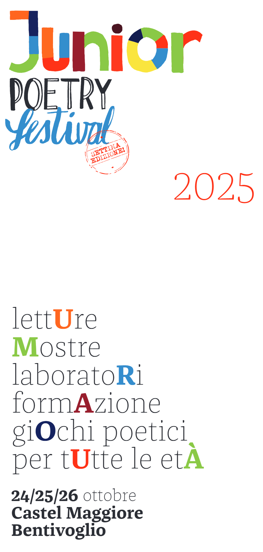 Dal 24 al 26 ottobre 2025 a Castel Maggiore e Pieve di Cento (Bo) l'associazione culturale Junior Poetry – nata da Accademia Drosselmeier di Bologna e libreria Lèggere Leggére di Castel Maggiore – organizza per il settimo anno il Junior Poetry Festival. Nato nel 2019, il festival ha il sostegno dei Comuni di Castel Maggiore e Bentivoglio ed è l'unico festival internazionale di poesia per ragazzi in Italia.